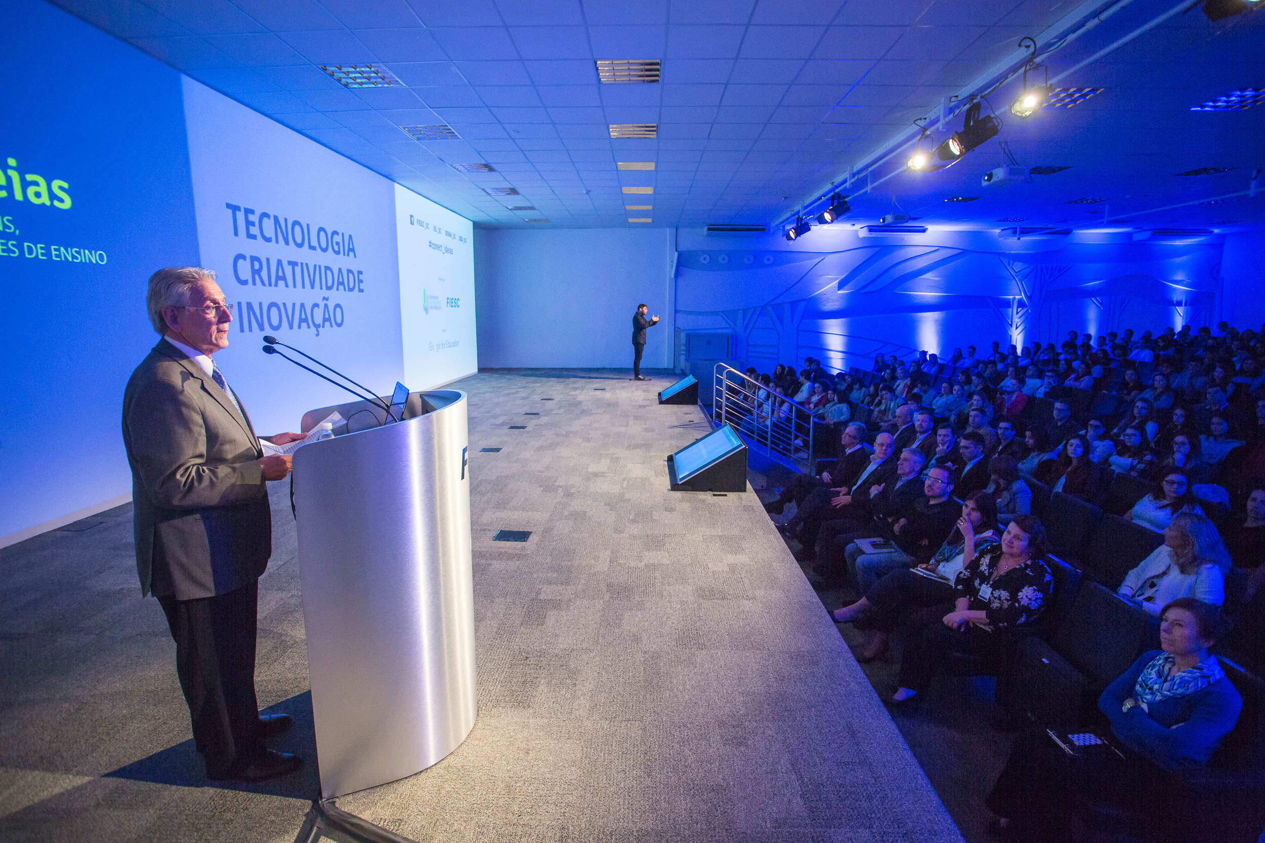 Florianópolis, 17.8.2017 – Os temas tecnologia, criatividade e inovação foram discutidos, nesta quinta (17) no evento Conect Ideias, realizado na sede da Federação das Indústrias de Santa Catarina e com espectadores em 19 pontos de recepção em todo o Estado e na Internet. A atividade celebrou o Dia do Estudante (11 de agosto) e o Dia do Estagiário (18 de agosto).