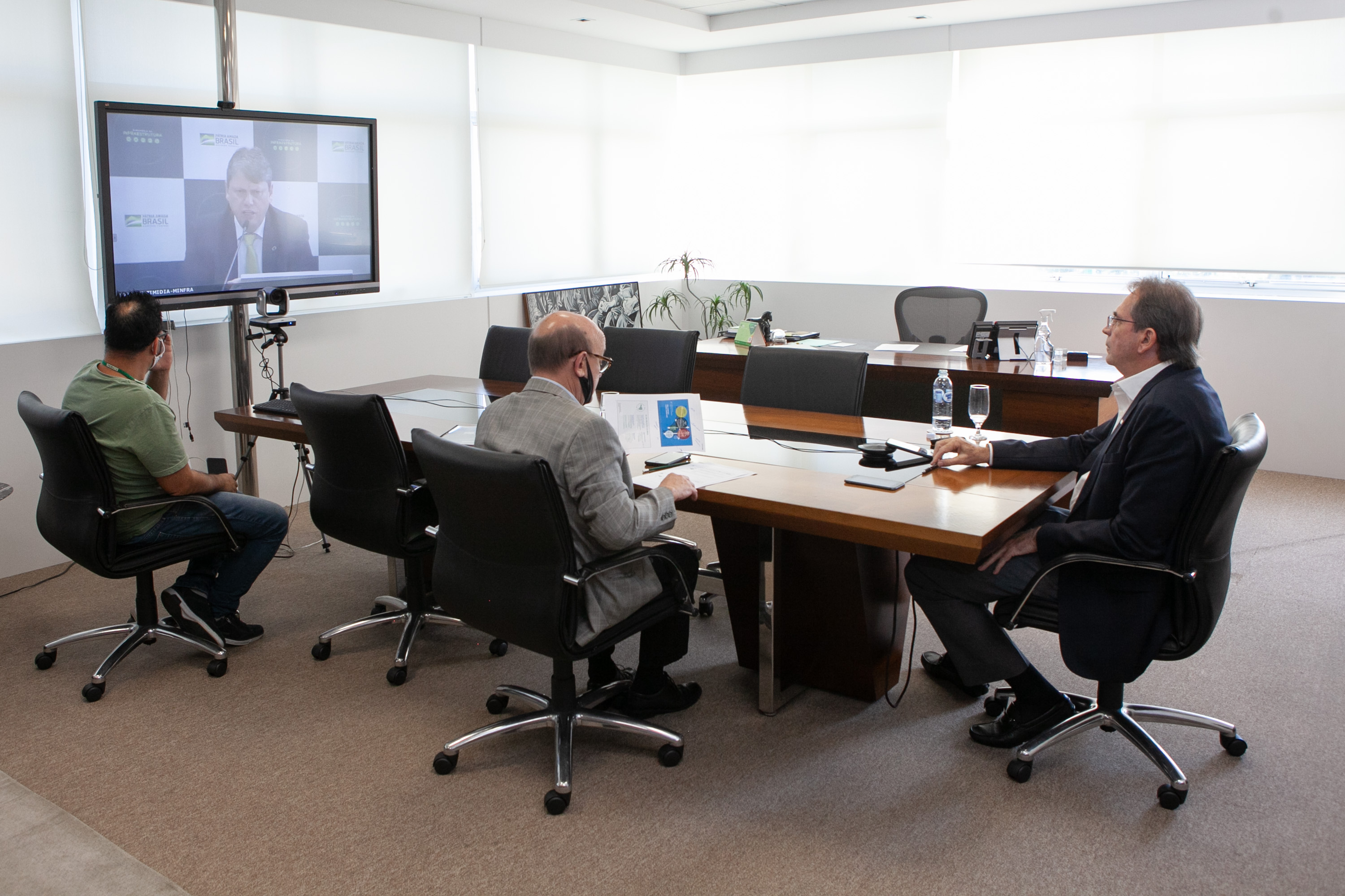 Florianópolis, 19.5.2021 - O ministro da Infraestrutura, Tarcísio de Freitas, garantiu a continuidade das obras da BR-285, no Sul de Santa Catarina, durante reunião semipresencial, com a participação da Bancada Federal Catarinense, do governador Carlos Moisés e de lideranças empresariais, nesta quarta-feira, dia 19. As obras corriam o risco de serem paralisadas por falta de orçamento, mas ele disse que elas vão prosseguir e que ainda hoje fará contato com a empreiteira responsável. No encontro, o presidente da Federação das Indústrias (FIESC), Mario Cezar de Aguiar, apresentou as contribuições catarinenses ao Plano Nacional de Logística (PNL 2035), que estava em consulta pública. O ministro se comprometeu em criar um modelo específico para avaliar as demandas catarinenses na área, medida que atende a uma reivindicação antiga da FIESC.