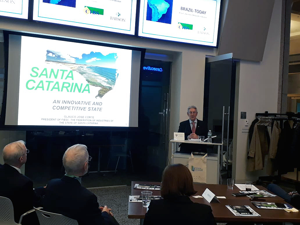 Florianópolis, 19.4.2018 – “Inovação, educação e tecnologia andam de mãos dadas, é impossível separá-las; a educação é o novo nome do desenvolvimento”. Com estas afirmações, o presidente da Federação das Indústrias de Santa Catarina (FIESC), Glauco José Côrte explicou, nesta quinta-feira, 19, em palestra na cidade americana de Boston, a origem do Movimento Santa Catarina pela Educação. A conferência foi apresentada no Babson College e foi promovida pelo Cambridge Institute of Brazilian Studies (CIBS) e pela Brazil Today.