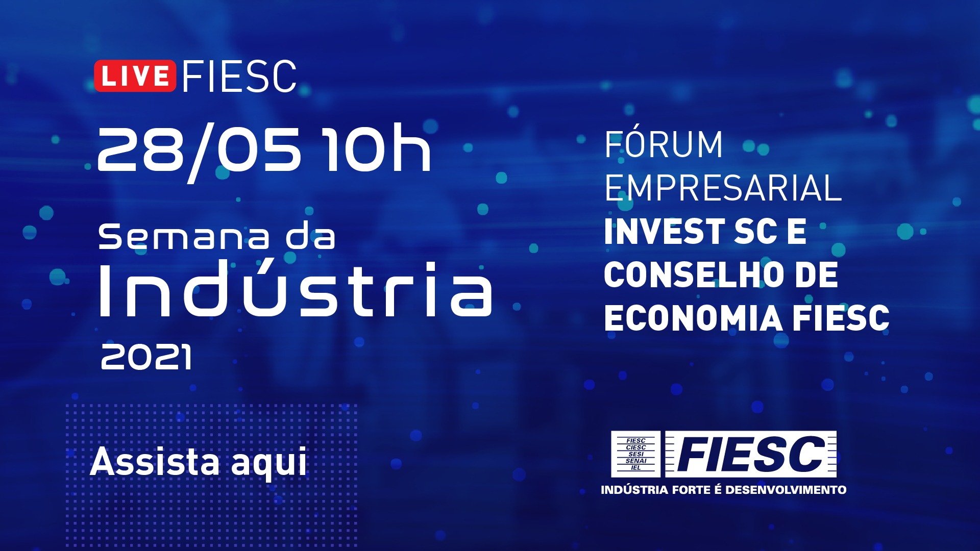 Florianópolis, 27.5.2021 - Nesta sexta-feira, dia 28, às 10 horas, será realizado o Fórum Empresarial Invest SC e Conselho de Economia FIESC, iniciativa conjunta com o Governo de SC, que marca o encerramento da Semana da Indústria. Participam deste encontro: o secretário de Desenvolvimento Econômico, Luciano Buligon; a secretária de Assuntos Internacionais, Daniella Abreu; o secretário especial adjunto do Ministério da Economia, Bruno Portela, e o secretário de comércio exterior do Ministério de Economia, Lucas Ferraz. A transmissão do evento será pelo canal da FIESC o YouTube