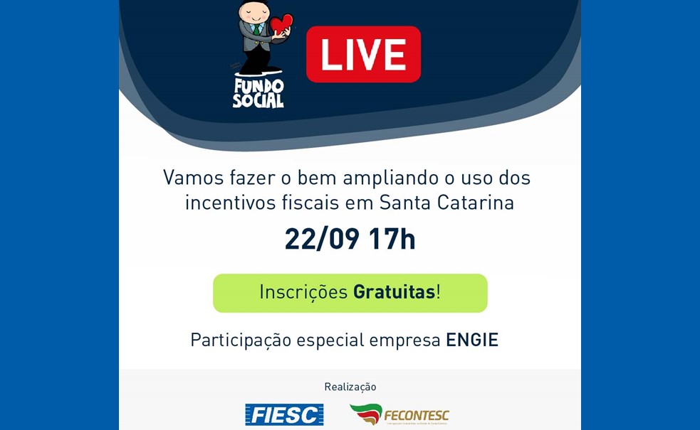 Florianópolis, 17.9.2021 - O aporte de incentivos fiscais em projetos sociais será tema de encontro online promovido pela Federação das Indústrias (FIESC) no dia 22 de setembro, dia do contador, para profissionais dessa área de todo o estado. A live visa esclarecer e incentivar o uso do imposto de renda devido pelas empresas em iniciativas catarinenses, garantindo assim que os recursos permaneçam no estado.