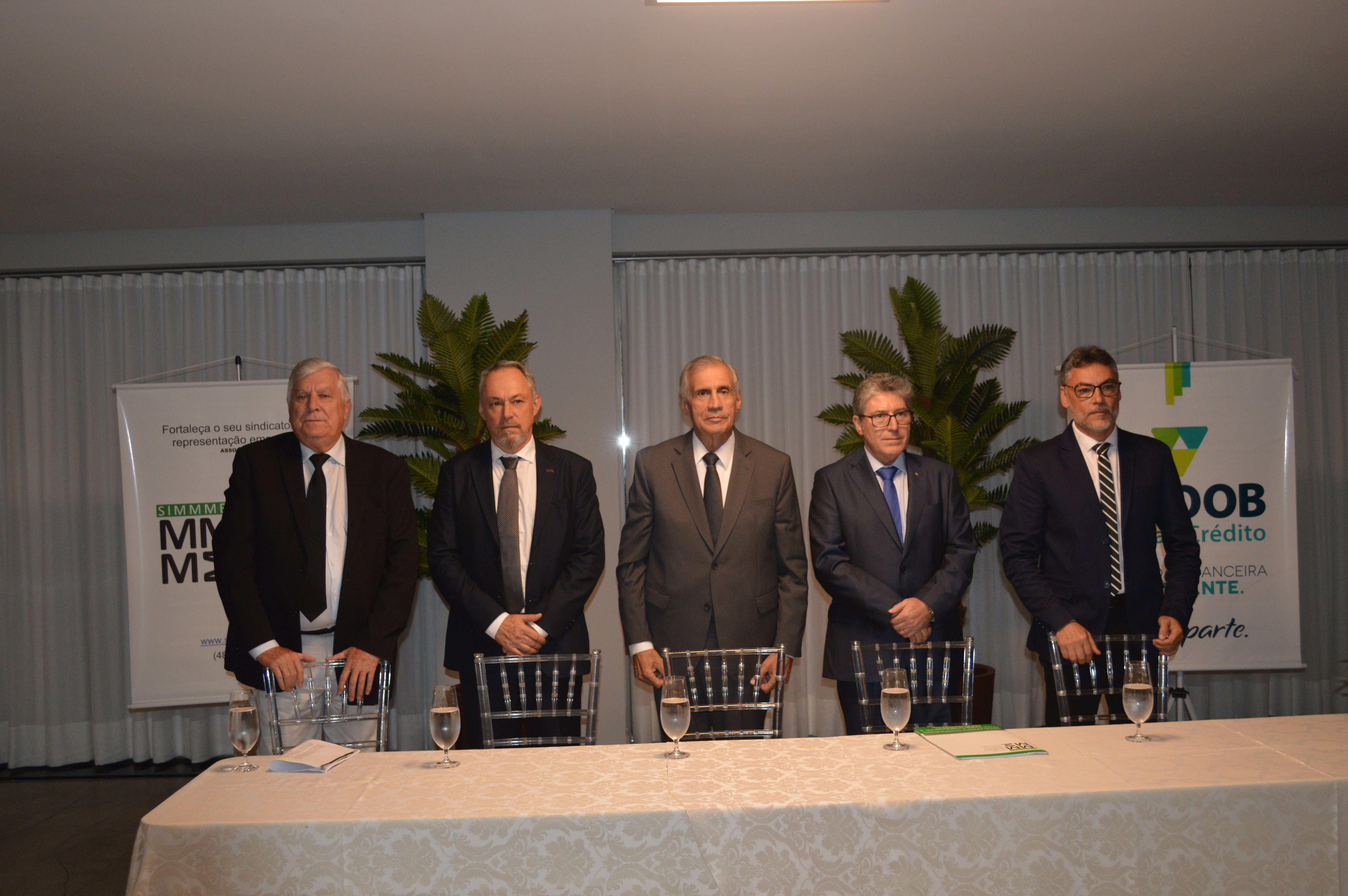 A mesa de Honra foi composta pelo vice-presidente da Regional Sudeste da FIESC, Fernando da Silva Rocha, pelo presidente do Sindicato das Indústrias de Pré-Moldados e Artefatos de Cimento da Grande Florianópolis (SINPREMAC), Tito Schmitt, pelo presidente da Associação Empresarial da Região Metropolitana de Florianópolis (AEMFLO) e Câmara de Dirigentes Lojistas de São José (CDL-SJ), Gilberto Rech, pelo ex-presidente do SIMMMEF, Conrado Coelho Costa Filho, e pelo presidente eleito e empossado, Fernandes Andretta.