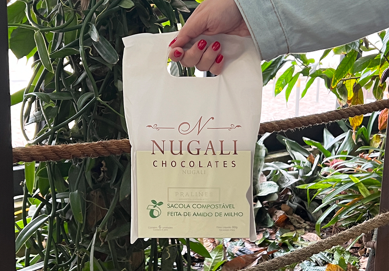 O amido de milho foi adotado pela Nugali a partir da provocação de um fornecedor local, a RL Embalagens, que tinha a matéria-prima e a tecnologia necessária.