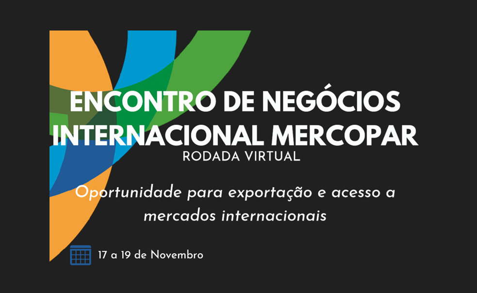 Florianópolis, 28.9.2020 – Empresários de diversos setores terão a oportunidade de saber mais sobre exportação e acesso a mercados internacionais, em rodada virtual de negócios entre os dias 17 e 19 de novembro. O Encontro de Negócios Internacional Mercopar está com inscrições abertas até o próximo dia 9 de outubro.
