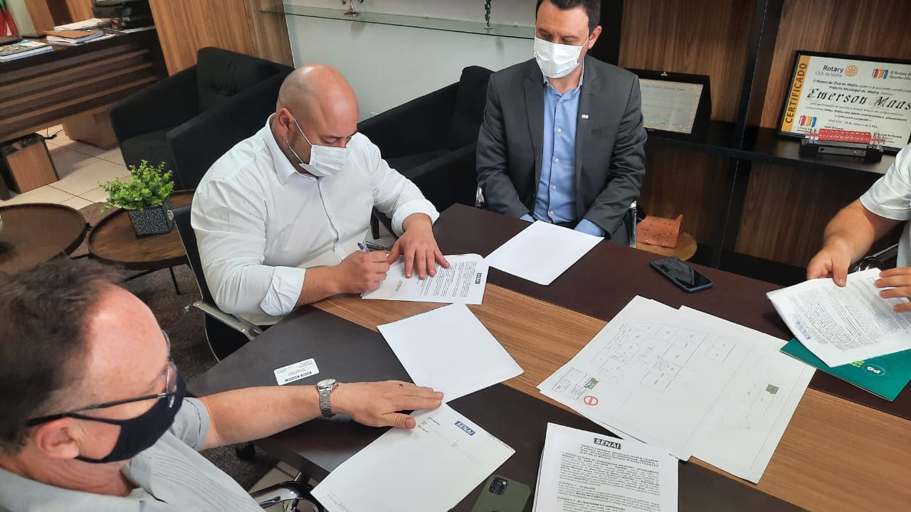 Florianópolis, 30.11.2021 - A Federação das Indústrias (FIESC) assinou nesta segunda-feira, dia 29, convênio com a prefeitura de Mafra para ampliar a empregabilidade na região. Por meio do programa Mais Empregos, oportunidades no mercado de trabalho passam a ser divulgadas na plataforma do Movimento Santa Catarina pela Educação. Assinaram o documento o diretor de educação e tecnologia da FIESC e diretor regional do SENAI/SC, Fabrizio Machado Pereira, e o prefeito Emerson Maas.