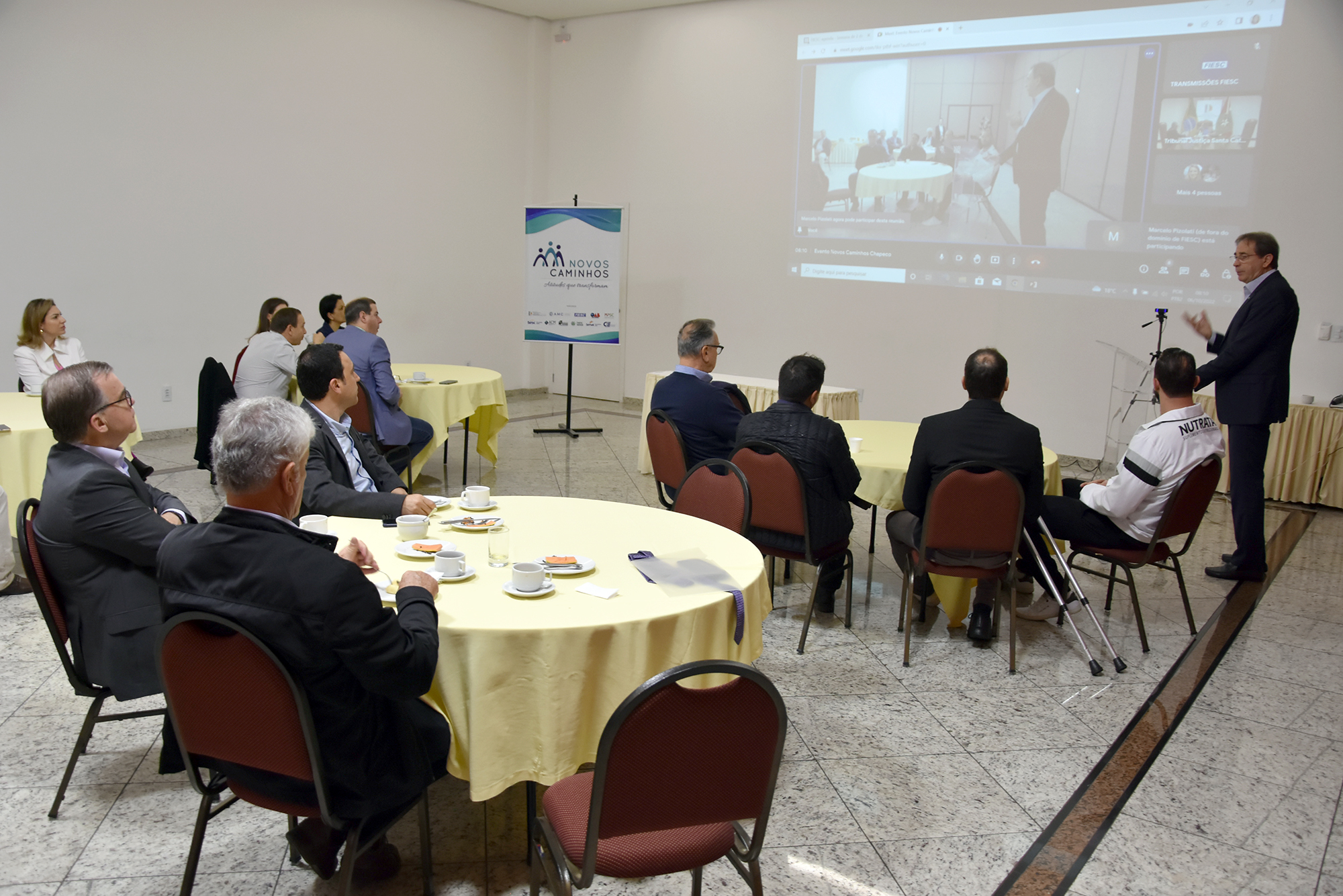 Florianópolis, 6.10.2022 - Jovens egressos do programa Novos Caminhos poderão acessar oportunidades na indústria por meio da plataforma do Movimento Santa Catarina pela Educação. A integração dos programas foi anunciada nesta quinta-feira (6) em evento realizado em Chapecó que reuniu a diretoria executiva da Federação das Indústrias (FIESC), autoridades do poder judiciário e empresas parceiras do Novos Caminhos. A iniciativa é fruto de parceria entre a FIESC, o Tribunal de Justiça de Santa Catarina (TJSC) e a Associação dos Magistrados Catarinenses (AMC) e tem o apoio de outras entidades.