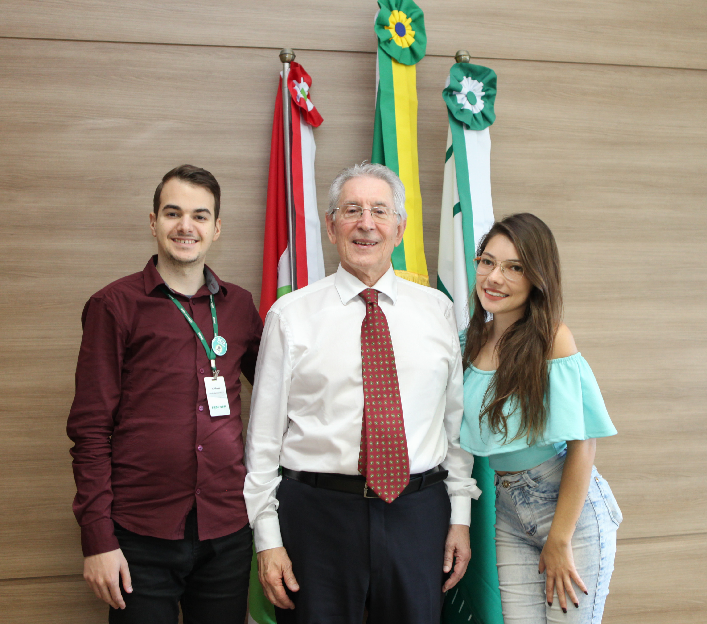 Florianópolis, 04.5.2018 – A FIESC homenageou nesta sexta-feira (dia 4), 14 colaboradores – um por região – que obtiveram maior número de menções de colegas dentro do Programa de Reconhecimento das entidades que integram a instituição. Entre os homenageados estiveram dois trabalhadores com deficiência: Matheus de Marchi, de Jaraguá de Sul, e Aline da Cunha Silva, de São José. O presidente da FIESC, Glauco José Côrte, enalteceu a participação de ambos, salientando que se trata de reconhecimento que receberam dos colegas. As entidades da FIESC possuem 350 colaboradores com deficiência, a maior parte contratada dentro do Programa Incluir para Crescer, lançada durante a gestão de Côrte.