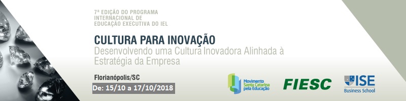 Florianópolis, 24.8.2018 – O Instituto Euvaldo Lodi (IEL/SC), entidade da FIESC, está com inscrições abertas para a segunda turma do Programa Internacional de Educação Executiva. A formação ocorre de 15 a 17 de outubro, no Hotel Il Campanario, em Florianópolis. Este ano, o curso tem parceria com o ISE Business School e abordará o tema Cultura para a inovação: Desenvolvendo uma cultura inovadora alinhada à estratégia da empresa. Os interessados podem se inscrever clicando aqui.