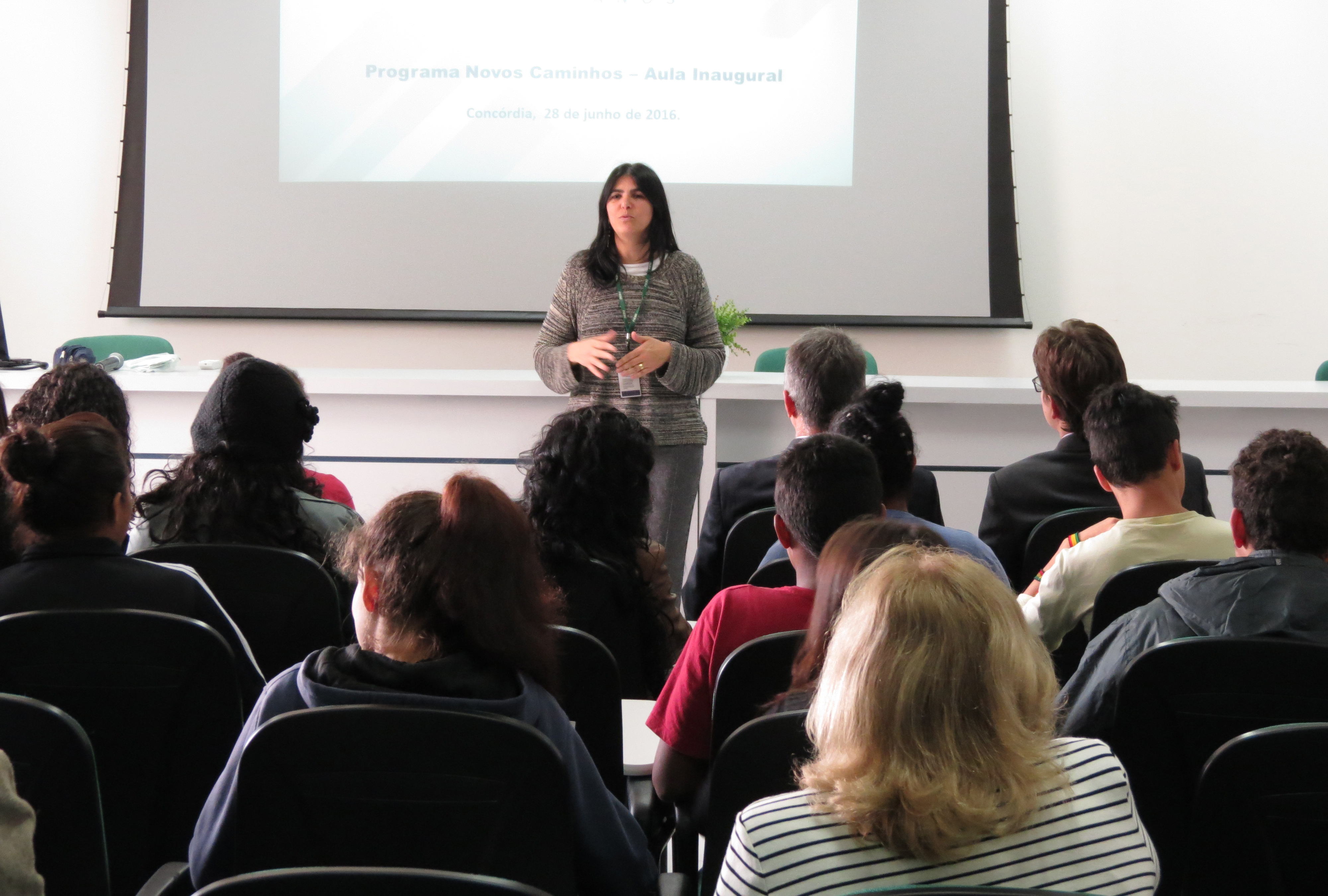 Florianópolis, 30.6.2016 – Mais de 40 jovens que vivem em abrigos do Estado em Concórdia e Joaçaba serão beneficiados pelas formações oferecidas por SESI, SENAI e IEL, por meio do programa Novos Caminhos. Nesta semana, eles participaram das aulas inaugurais do projeto que é promovido pela Federação das Indústrias de Santa Catarina (FIESC) em parceria com o Tribunal de Justiça (TJSC), a Associação dos Magistrados Catarinenses (AMC) e a Ordem dos Advogados do Brasil (OAB-SC).