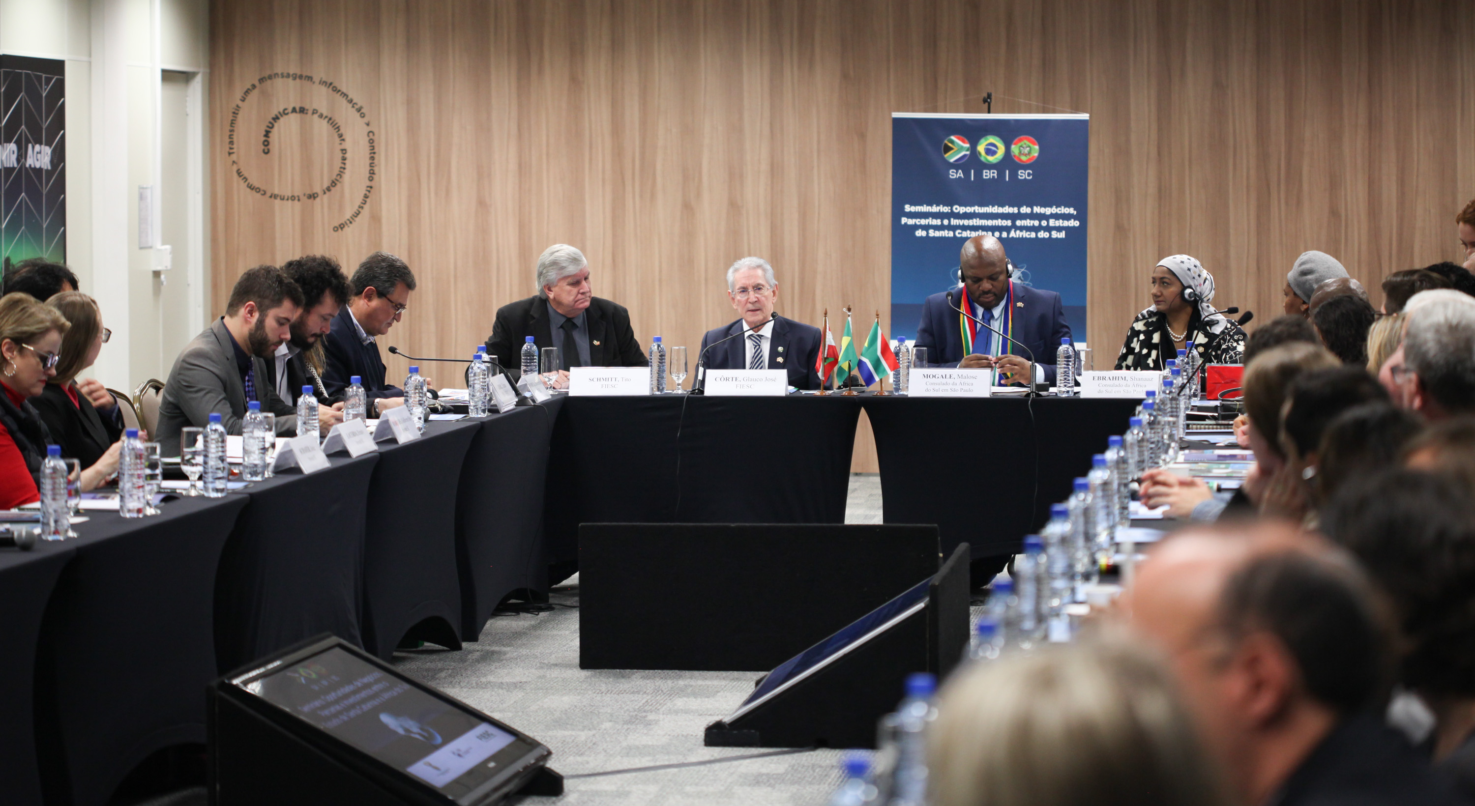 “Quanto aos investimentos, Santa Catarina apresenta uma condição favorável para inserção dos investidores sul-africanos no Brasil já que são grandes as similaridades em termos culturais e de organização produtiva. Nós temos essa característica de pequenas áreas geográficas, mas que conseguem se transformar em economias diversificadas e em desenvolvimento econômico e social”, afirmou Côrte. Ele ressaltou que Santa Catarina e África do Sul são economias que se encontram em desenvolvimento, buscando uma inserção maior no mercado internacional. “Assim, essa parceria torna nossas relações econômicas ainda mais vantajosas ao ampliar as capacidades tecnológicas, fortalecer as áreas de interesse e aprofundar a integração e a cooperação”, finalizou.