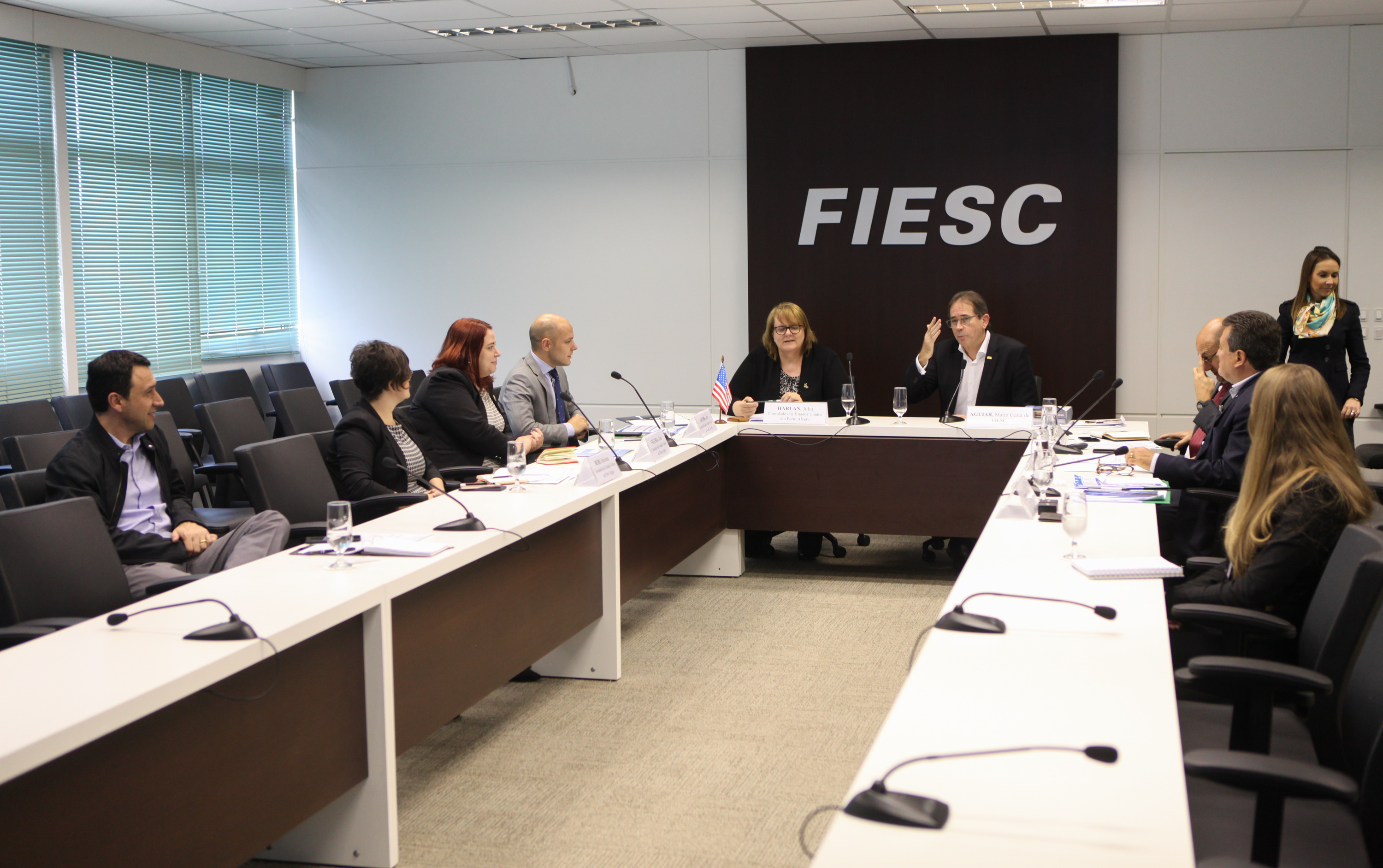 Florianópolis, 16.8.2018 – A Federação das Indústrias de Santa Catarina (FIESC) e o Consulado dos Estados Unidos em Porto Alegre debateram a ampliação do comércio e da cooperação em áreas como inovação, saúde e educação, durante reunião nesta quinta-feira (16), em Florianópolis. O presidente da FIESC, Mario Cezar de Aguiar, destacou que o estado tem interesse em fortalecer a parceria bilateral. “Os Estados Unidos são o principal destino das exportações catarinenses. Isso nos engrandece e consideramos uma vantagem competitiva, pois é um mercado seletivo”, afirmou, lembrando que Santa Catarina, a sexta maior economia do Brasil, tem uma indústria diversificada e desconcentrada.