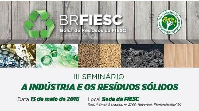 Florianópolis, 4.5.2016 – A Federação das Indústrias de Santa Catarina (FIESC) promove seminário em que abordará o tema a indústria e os resíduos sólidos. O encontro será no dia 13 de maio, das 14h às 17h30, em Florianópolis. Serão debatidos assuntos como a situação atual e perspectivas da Política Nacional de Resíduos Sólidos, logística reversa e o sistema eletrônico para controle de movimentação de resíduos e rejeitos.