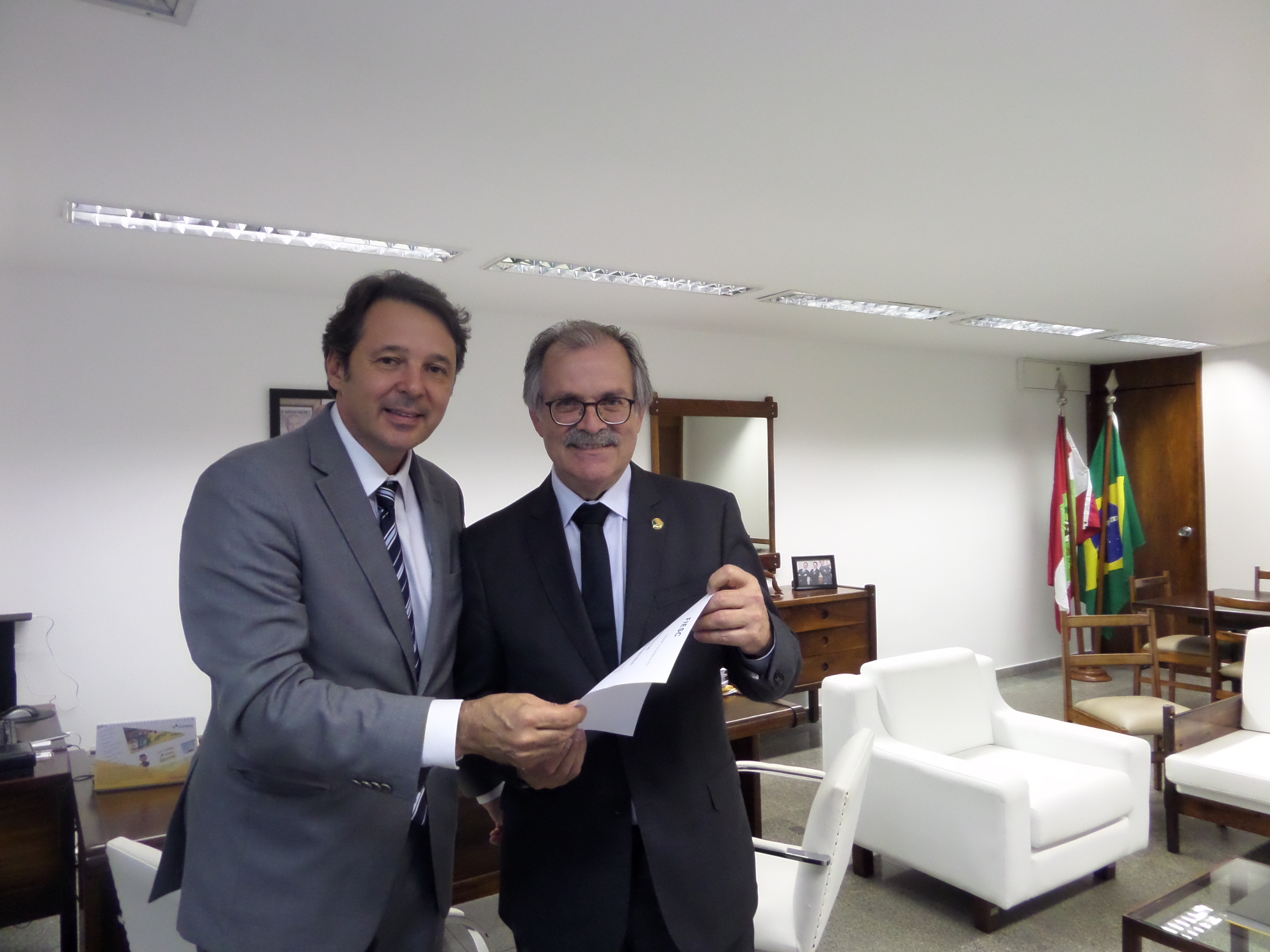 Brasília, 24.9.2015 - O senador Dalirio Beber (PSDB-SC) aproveitou a presença do diretor jurídico da Federação das Indústrias do Estado de Santa Catarina (FIESC), Carlos José Kurtz, em reunião do Fórum Parlamentar Catarinense, na manhã desta quinta-feira (24), em Brasília, para também defender o Sistema S, que está ameaçado, diante da proposta do governo federal em reduzir em 30 % os recursos destinados para essas instituições.