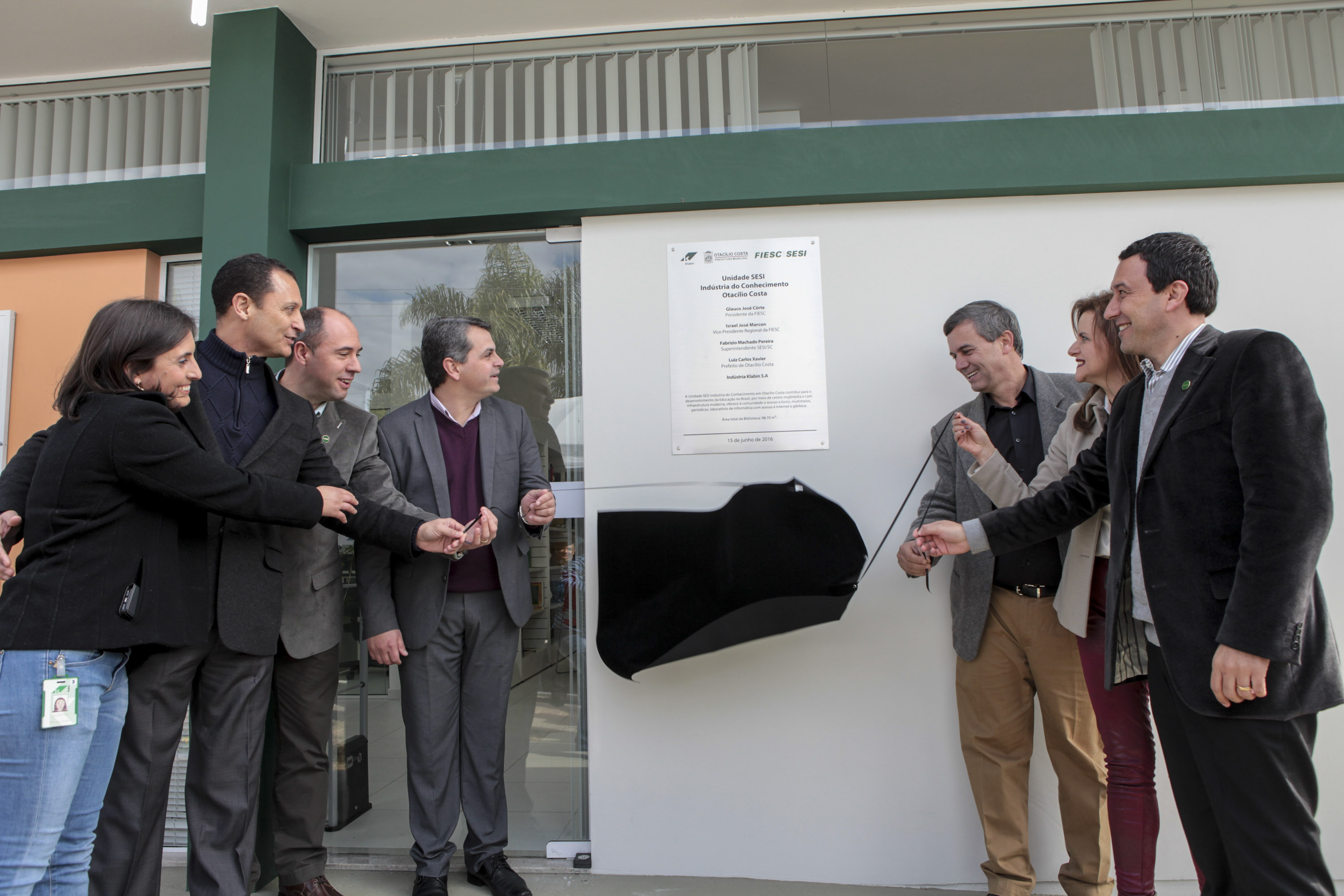 Otacílio Costa, 15.06.2016 – O SESI, entidade da FIESC, entregou nesta quarta-feira (15) a 13ª biblioteca em Santa Catarina do programa Indústria do Conhecimento, na Klabin, em Otacílio Costa. Com 100 metros quadrados, a unidade disponibiliza aos trabalhadores e comunidade um centro multimídia com nove computadores, um acervo com cerca de 1,5 mil títulos, incluindo livros acadêmicos, de literatura em geral, literatura infantil e infanto-juvenil, jornais, periódicos, DVDs e gibis.