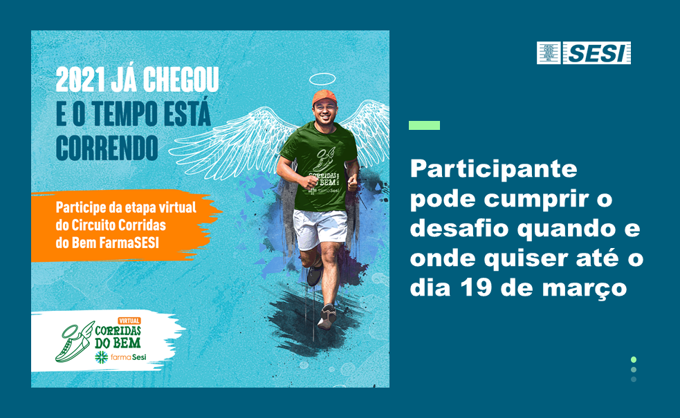Florianópolis, 17.2.2021 - O SESI, entidade da FIESC, retoma este ano a tradicional Corrida do Bem adaptada aos tempos de pandemia. A prova, que antes reunia centenas de atletas, agora será individual e com comprovação virtual da realização do desafio. As inscrições estão abertas e podem ser realizadas até o dia 5 de março. Os participantes poderão correr 5, 10 ou 21 quilômetros, ou ainda, optar por realizar o chamado “revezamento família”, uma prova de 3 quilômetros com a participação de pelo menos dois membros de uma mesma família.
