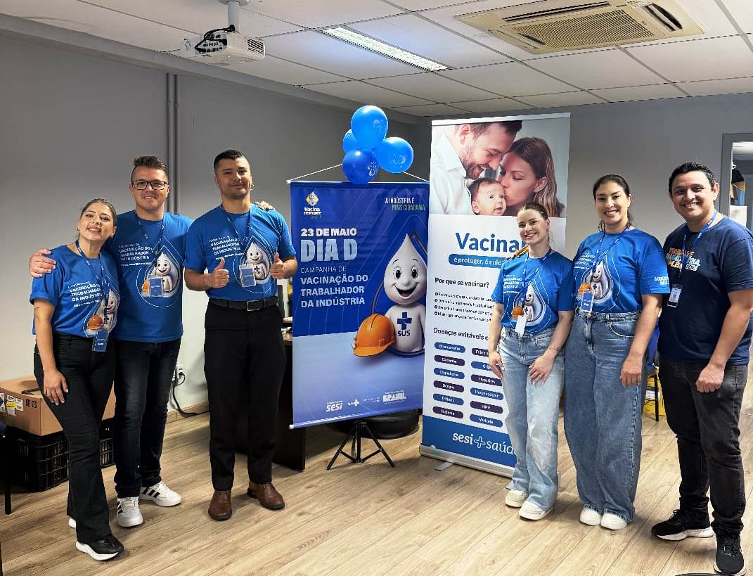 Florianópolis, 26.05.2025 – O SESI/SC fez na última sexta (23), Dia D de Vacinação do Trabalhador da Indústria, uma ação especial na Dominik MetalCenter, em São José, na Grande Florianópolis, para marcar a data.