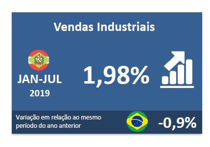 Florianópolis, 29.8.2019 – As vendas industriais catarinenses de janeiro a julho acumulam alta de 2% na comparação com o mesmo período do ano passado, mostra pesquisa do Observatório FIESC, divulgada nesta segunda-feira (2). Foram registrados avanços em 10 dos 14 setores consultados, com destaque para informática e eletrônicos (16%), produtos de metal (14,4%) e veículos, reboques e carroceria (7%). No período, os segmentos que apresentaram queda no faturamento foram vestuário e acessórios (-4,5%), celulose e papel (-3,1%) e produtos têxteis (-2%). Clique aqui e veja a análise completa